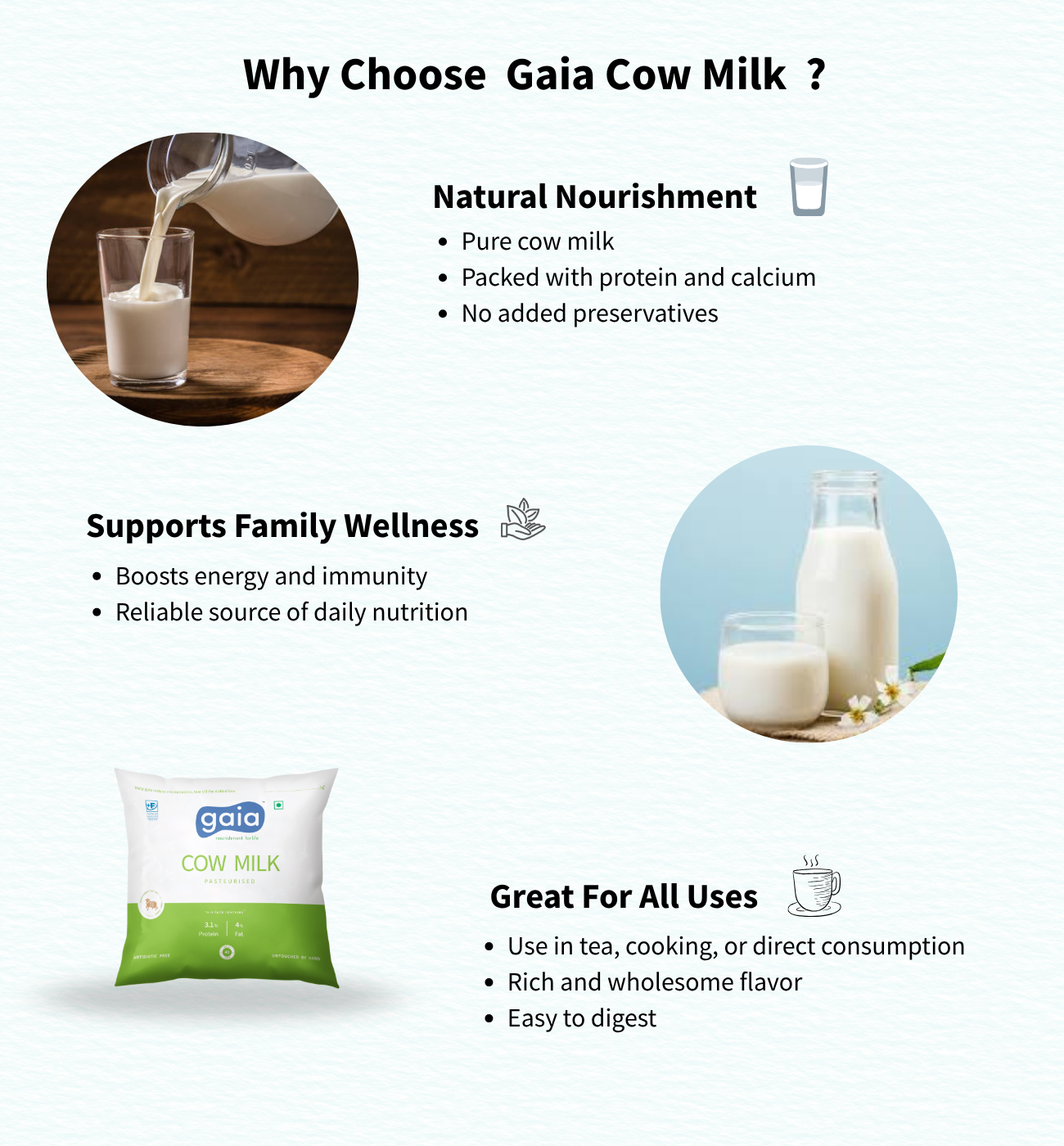 Milk offers the natural goodness of fresh cow’s milk in a convenient, easy-to-use packaging. It is carefully processed to retain essential nutrients while ensuring freshness. The poly pack is lightweight, flexible, and offers a cost-effective solution for daily milk consumption. Free from added preservatives, chemicals, or powders, it delivers pure milk with no artificial additives. The packaging is designed for easy pouring and storage, making it ideal for everyday use. For added convenience, it is easy to store and carry, ensuring you have fresh milk wherever you go.